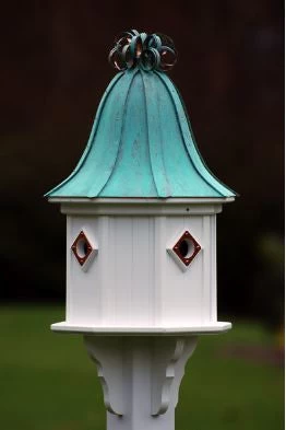 Architectural Copper Roof Birdhouse is constructed of PVC/Vinyl that lasts a lifetime.